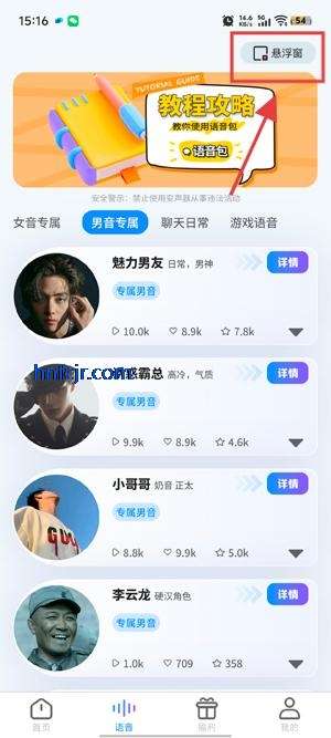 1、打开你的萌音变声器,在语音界面点击右上角的悬浮窗功能。