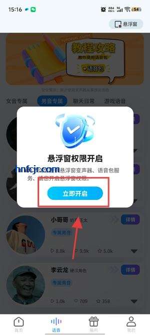 3、在悬浮窗界面找到萌音变声器,点击开启。