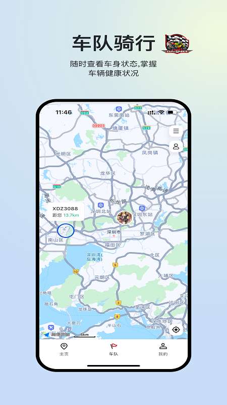 3、通过骑行团队,可以获得与所有成员实时共享的位置信息,准确把握每个成员的动态位置。