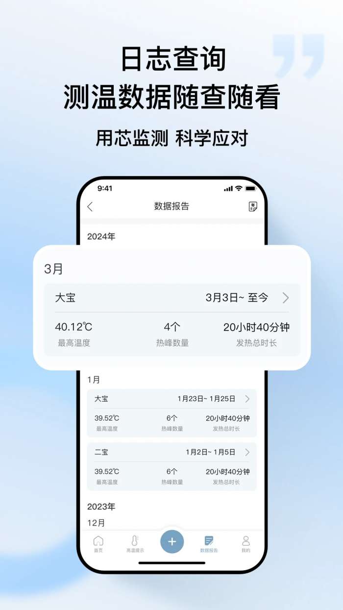 2、健康数据分析:该软件内置智能算法,对体温数据进行深入分析,帮助用户了解体温变化趋势。