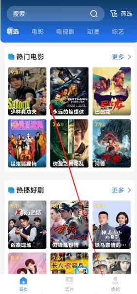 1、用户进入软件之后可以直接在首页中对感兴趣的电影、电视剧进行查看浏览。
