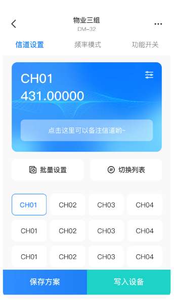 4、保存方案 一键保存对讲机设备配置方案,可以完成各配置方案的保存操作。