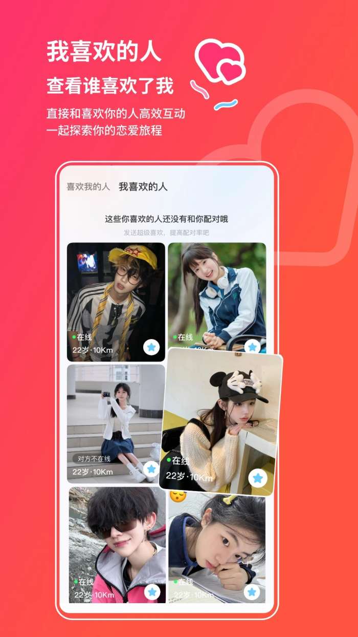 4、社交网络:在线配对功能可以帮助用户找到志同道合的人,扩大社交圈,结交新朋友。