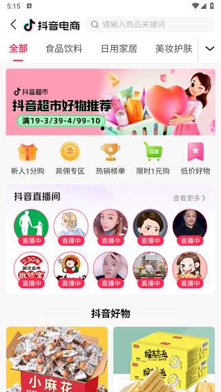 3、抖音好物:可以在这里看到抖音直播和一些达人的推荐好物,你可以自己选择省钱购买或者推荐他人购买,这两者都能让你获得一的奖励。