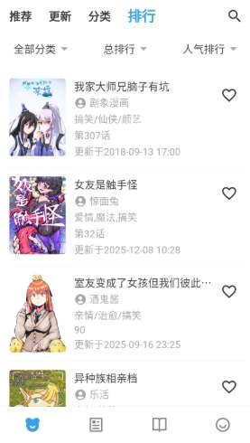 4、排行根据当前热度将漫画进行了排序。