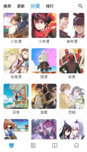 3、分类页面将漫画进行了详细的归类。