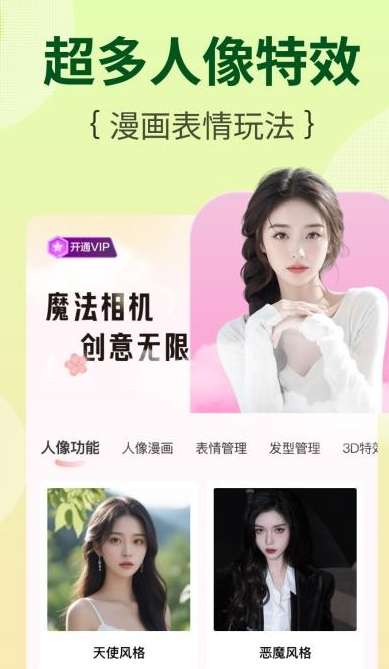 2、用户还可以使用魔方相机拍摄特效照片和生成肖像漫画。