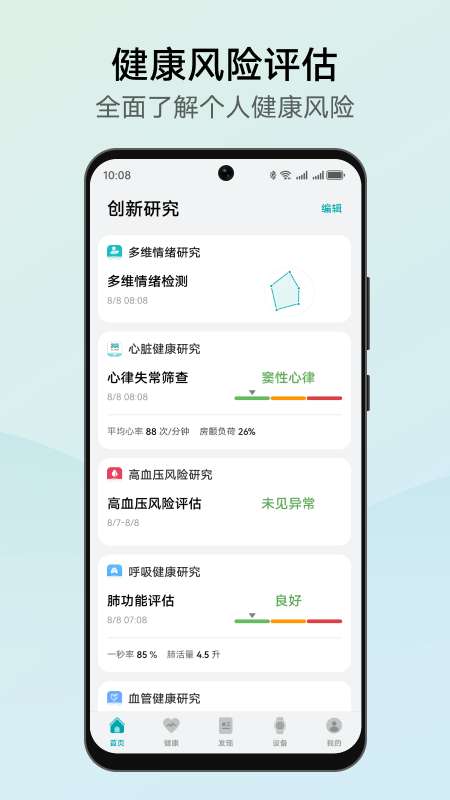 华为创新研究app是一款健康服务软件。通过软件,可以与华为及国内外智能穿戴设备对接,帮助每个人更好地记录运动、心率、血压、血氧、睡眠等数据,随时跟踪自己的健康状况。此外,它还为大家提供专业的健康知识普及,方便大家更好地了解各种疾病知识,保护自己的健康。该平台还贴心地提供了丰富的健康信息,帮助你扩展知识,养成良好的习惯。无论是日常锻炼还是健康管理,你都能在这里找到贴心的支持。