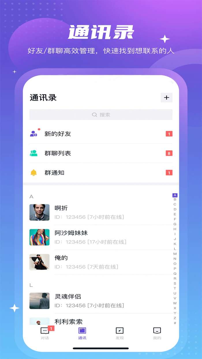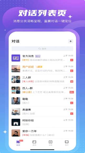 3、群组聊天:可免费创建群组,满足您与众多伙伴交流的需求。群聊还具备成员保护、匿名聊天、群员禁言等丰富玩法,为群组沟通带来更多安全和乐趣。