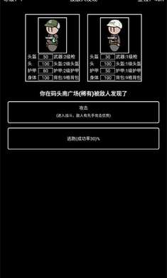 5、在搜索过程中会有概率遇到敌人,你可以选择绕开或者进入战斗,进入战斗后会自动进行,战斗失败会损失所有物品。