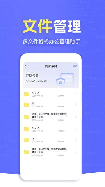文件管理软件合集支持智能文件分类,管理图片、视频、音频、文档、安装包、压缩包、微信文件、qq文件等。搜索文件很简单,一键搜索就能找到想要的文件。手机存储空间的使用情况一目了然。快来下载使用吧非常不错哦