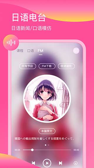 1、热门影视配音:从动漫、日本电视剧和电影中精选经典片段,提供原创配乐、字幕和人物台词,以创造现实生活中的语境练习。