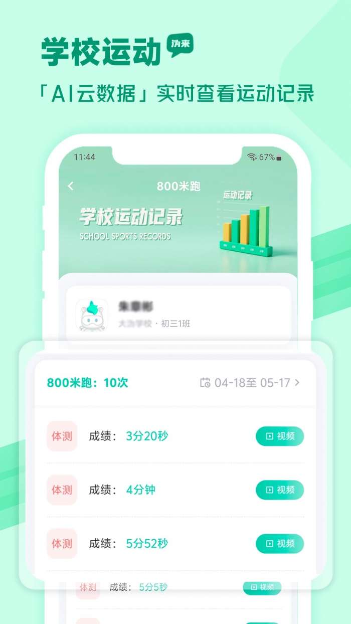 2、在“学校运动”页面中,系统会根据AI云数据自动记录运动成绩,可随时查看不同日期的训练表现。