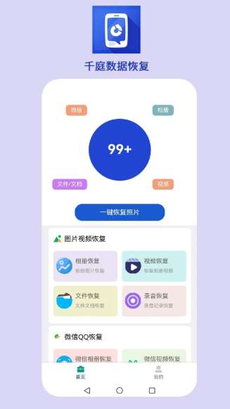 千庭数据恢复app可以帮助你及时恢复手机上的一些重要数据,让我们不必担心不小心删除了重要的内容。它提供智能扫描功能,可以显示所有删除的数据,也可以进行详细的划分。您可以快速选择要恢复的内容。帮助用户快速、安全地找回因误操作、意外删除或设备故障而丢失的重要文件。无论是照片,视频,文档还是其他类型的文件,通过其强大的扫描和恢复技术,用户可以在数据丢失的第一时间恢复损失。