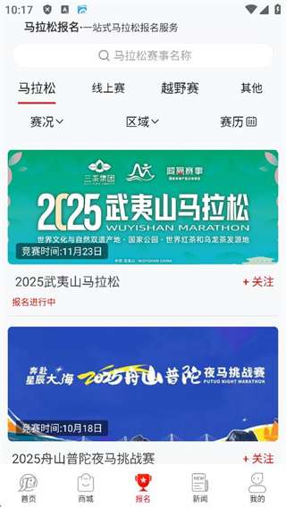 1.马拉松赛事新增预报名;