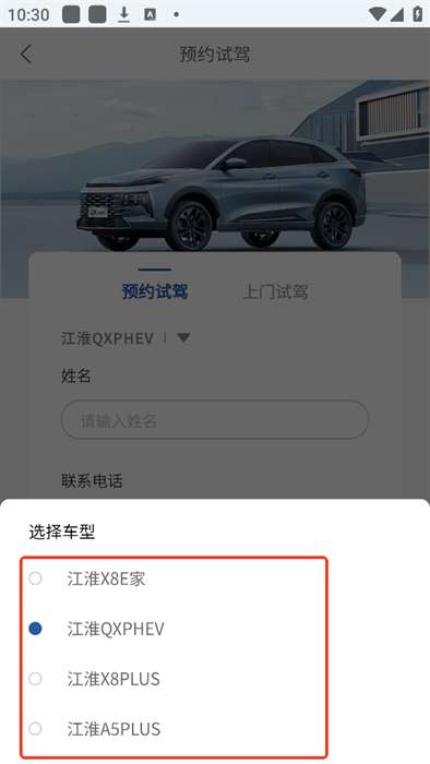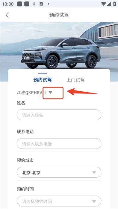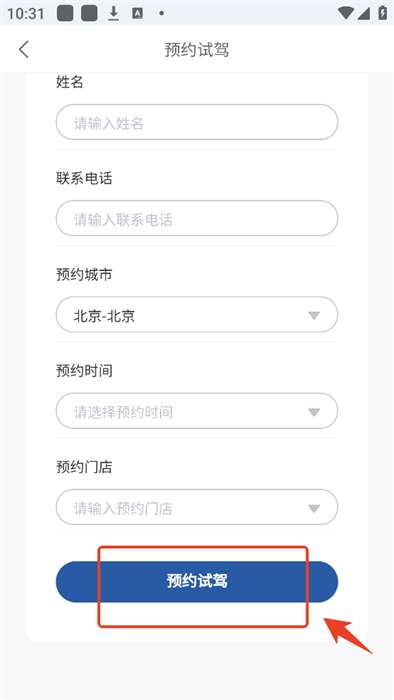 3、选择车型后根据要求来填写相关信息,填写完成后点击下方的“预约试驾”即可完成试驾预约。