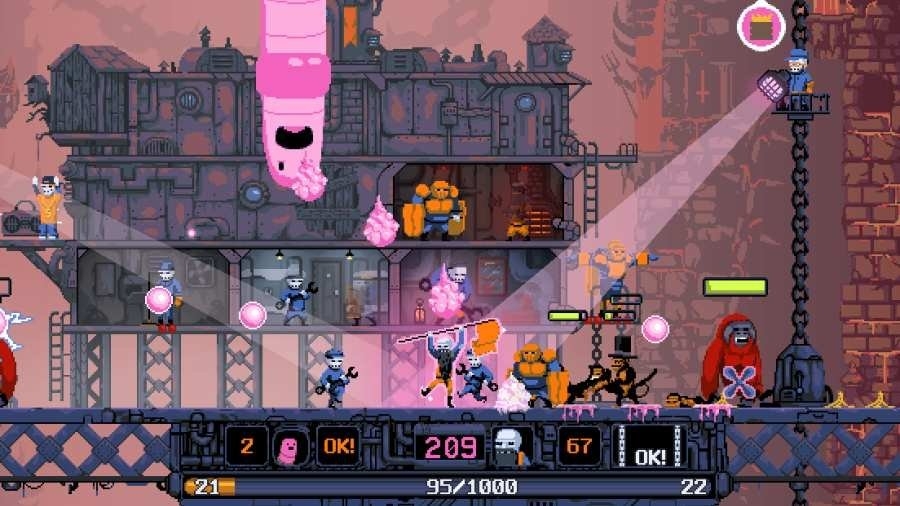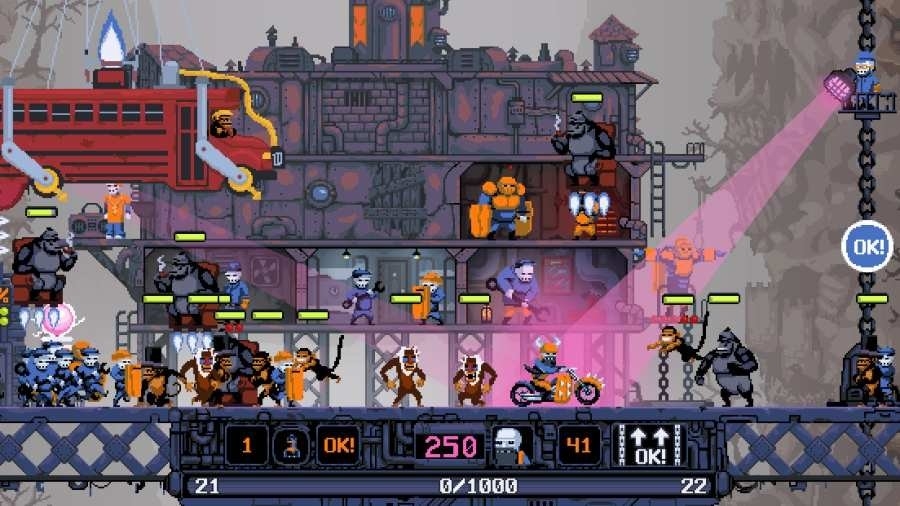 冰冷地域游戏官方版主要的游戏场景是在一座工厂里有很多人在自己的岗位上做事情,当然其中还有一些猴子在捣乱,看管的是飞行在空中的车里面的人,游戏场景中还有无轨列车在空中飞行,当然猴子有些也可以飞起来。高架上的人也是看管者,他们手里拿着远光灯,看见捣乱的需要杀死他们,然后从中获取一些资源。