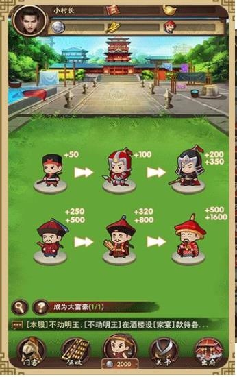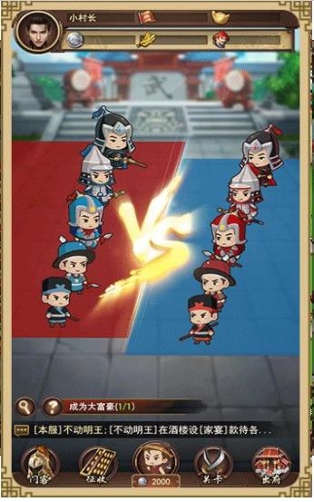 1、玩家需要操控着自己的家丁去上传战斗,一开始的家丁等级非常的少,并且所需要的金钱也很少。