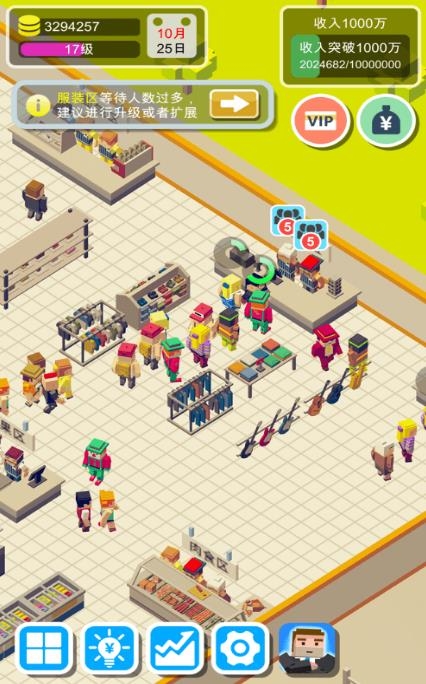 2、通过升级超市面积以及货品来吸引更多新的客人到来,这样你的超市长体积以规模也会慢慢的变大,客人们愿意购买话费的钱,也就会越来越多。