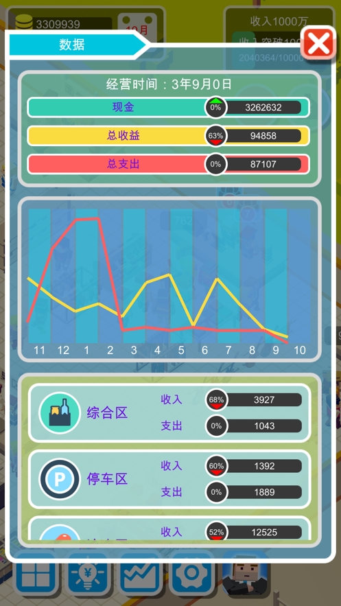 2、想了解某时段的经营数据,可以点击数据按就会出现差事的,每个区域的收入与支出,而且还会有数据表为显示。