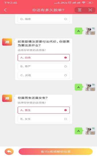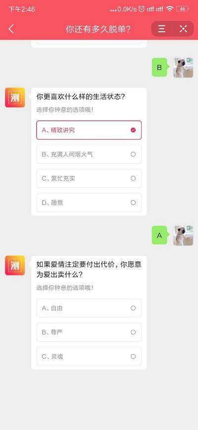 1、进入板块之后就会有官方的账号想你弹出对话框,上面有文字提问还有就是几个不同的答案;