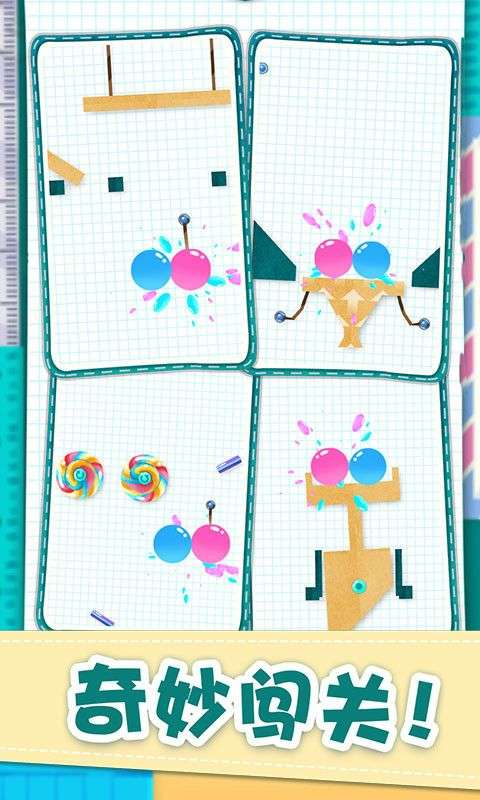 1、用手指在屏幕上面滑动就会把线给切断,关卡中的两个小球就会撞击在一起了;