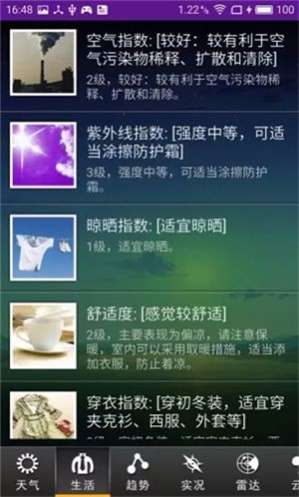 2.可以显示每日的穿衣指数和紫外线,使每个人都可以做充分的准备;