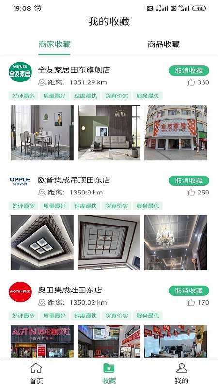 3、我的收藏,在线查看自己曾经收藏的各种店铺以及各式各样的活动来了解到最适合自己的家装装修,来进行购买挑选