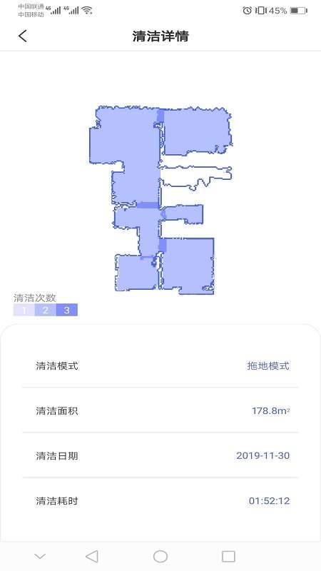 4、面积的探测可以让用户操控机器人探测家里的实际面积,对于该面积机器人会进行终端保存