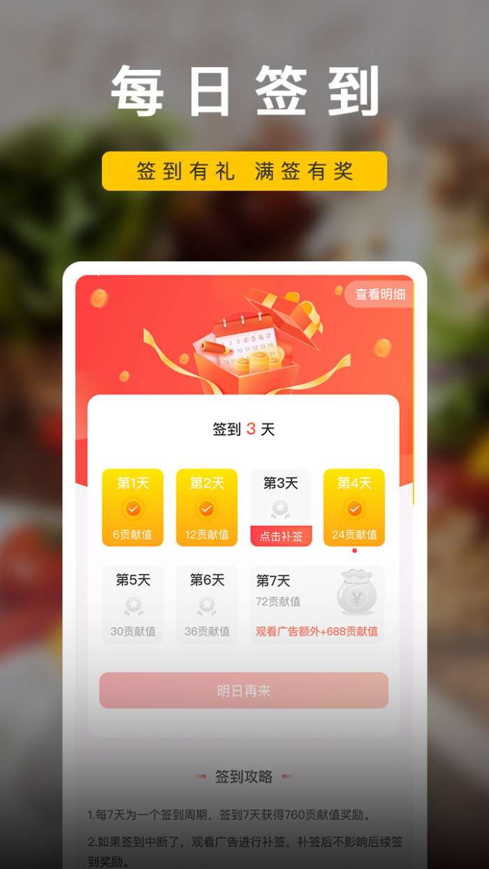 4、签到,用户只要在软件中签到就能拥有金币,让用户在消费的时候可以享受到更多的优惠。