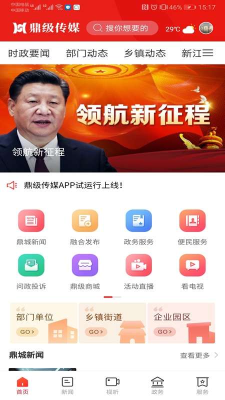鼎级传媒APP是为了用户能通过各种方式来看到新闻,在里面收录了各种类型的新闻,让用户可以通分类来了解到自己想要了解的新闻。用户通过这个软件不仅能及时的查看到新闻,还可以在里面更进一步的了解到新闻的服务,让用户有更多的政务服务,享受到不同的民生服务基础。用户使用这个软件还可以直接在里面享受到政策和选择,让用户在里面能传播到更多的主频道,让用户可以了解到不同的观点和选择基础。下载这个软件用户就可以在里面了解到更多的信息。
