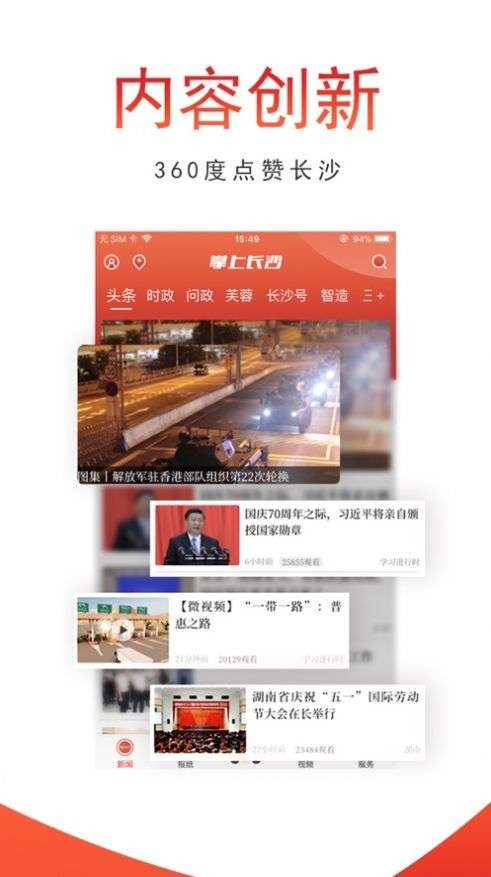 1.是"掌上长沙"的主要功能,通过文字、图片、视频、音频等多种形式,实施新闻资讯24小时滚动发布;