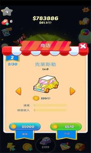 4、让跑车去完成任务,获得红包,只有积累金币才可以解锁更高级的赛车。