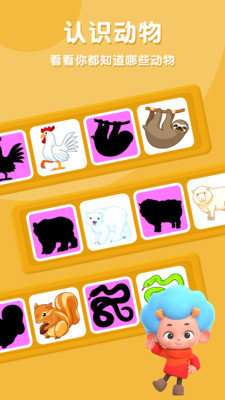 2、30多种动物,将精美图片与阴影一一配对,提高孩子形状匹配能力,按下正确答案的同时也会出现动物的发音,