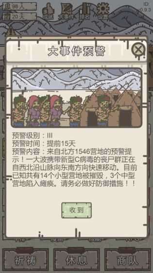 ④每次探索副本会消耗温饱、健康和战力;每次与副本内敌人战斗会大量消耗健康和战力,当健康/战力任一不足时会强制判定失败消耗人口。(注意:一百天以后战斗数量和难度会大幅度增加;三百天以后的战斗连小怪都很难打过。)