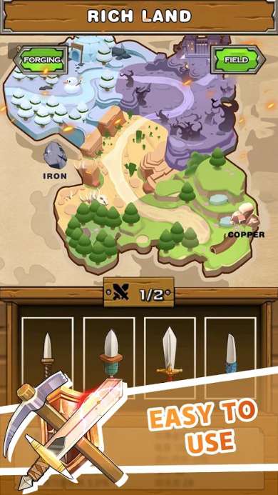 1、游戏具有很强的休闲和放置元素,你要打造出强大的武器给英雄们装备上