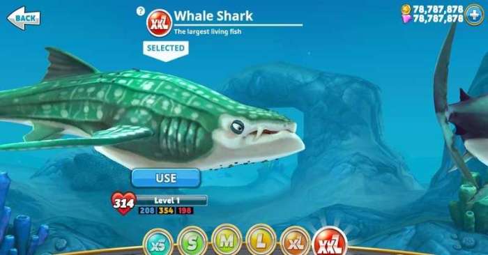 ps:玩家刚进入游戏发现鲨鱼最高只能解锁到xxl级,其实玩家最高可以解锁到!!级的鲨鱼,就是巨齿鲨。