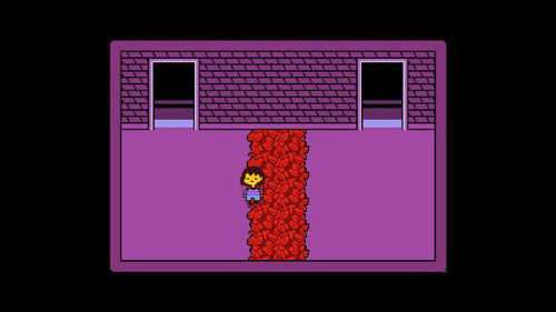 进入到第一个存档点北面的房间,Toriel会亲自把这个房间的谜题给解决,所以直接穿过北面的门即可。