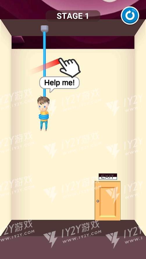 1.手指划线将绳子切断,那个需要被救的人就会掉下来,但是他被捆住了手脚,完全需要他人的帮忙。