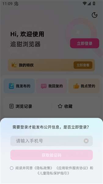 3、然后我们可以在登录页面上输入自己的手机号和验证码,从而成功完成账号登录操作。