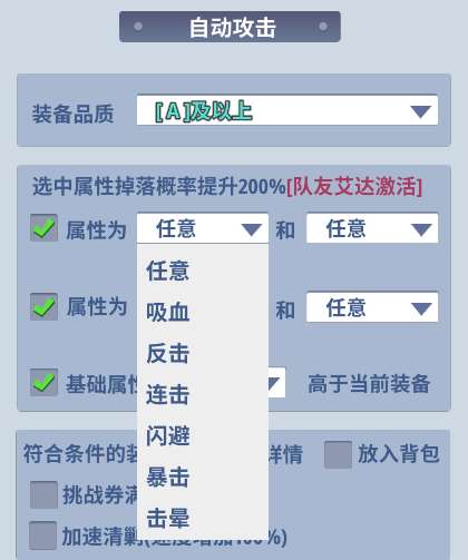 对于走出新手期的幸存者,已经清楚自己想要什么样的词条属性,此时可以在自动攻击处进行对应设置,优先挑选自己想要的词条属性。