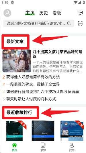 3、在首页下方可浏览最新文章与最近收藏排行,点击标题可查看详细内容或阅读相关资料。