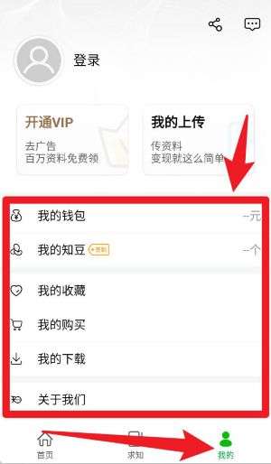 5、在“我的”页面可查看钱包余额、知豆数量、收藏、购买及下载记录,并可进入“关于我们”了解平台信息。