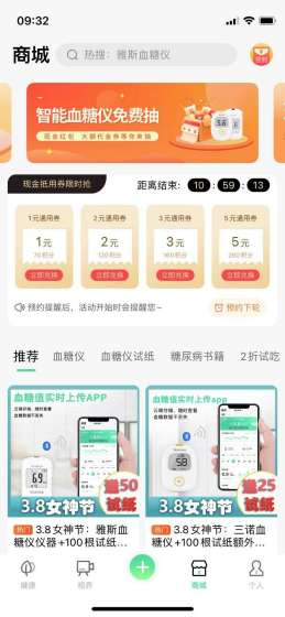 并提供日常健康检测需要用到的仪器和耗材,包括血糖测量仪、血压测量仪等,便于糖友的使用,同时糖友在先锋鸟中的日常使用情况,提供鼓励积分,积分换取超值优惠、参与团体目标比赛等,持续的健康管理增加动力,系统还可根据平时的检测指数,运算出健康目标值以及统计报告。根据每个糖友自身的不同,系统会为糖友每天进行检测提醒,以帮助不同用户更好的进行健康管理。