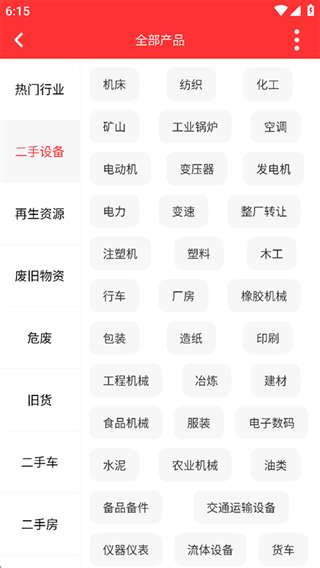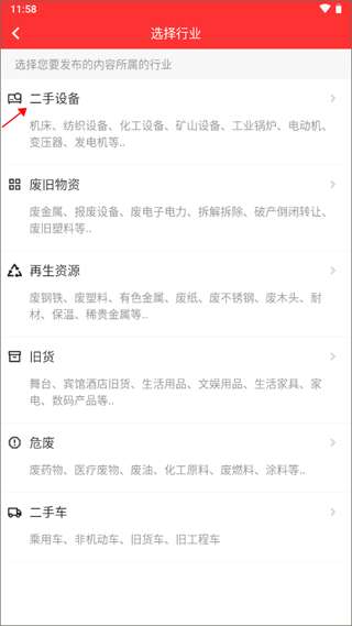 3、这时页面出现了很多的行业,以二手设备为例。