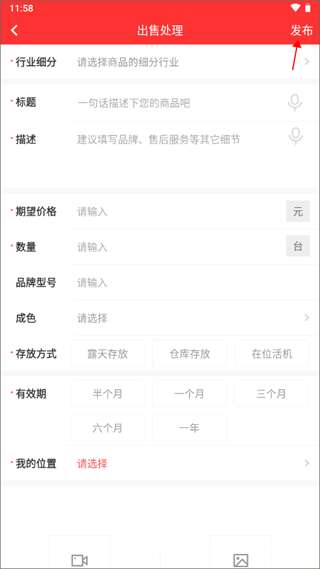4、填写你发布的出售信息,填写完就可以点击右上角的“发布”将信息发布出去即可。