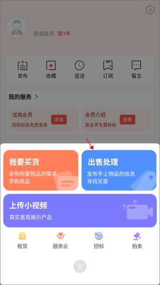 2、页面弹出来了几个选项,根据自己发布的信息来选择,点击“出售处理”。