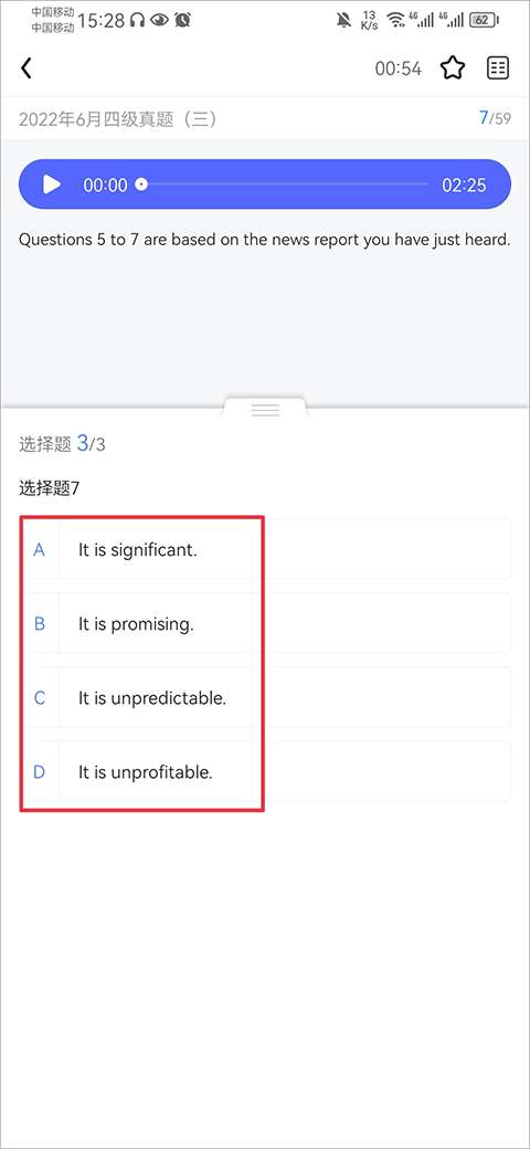 2、选择真实的四六级英语问题在智能模拟考试中回答。