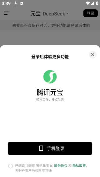 1、首先在本站下载元宝app,新用户可以手机号注册并登录。