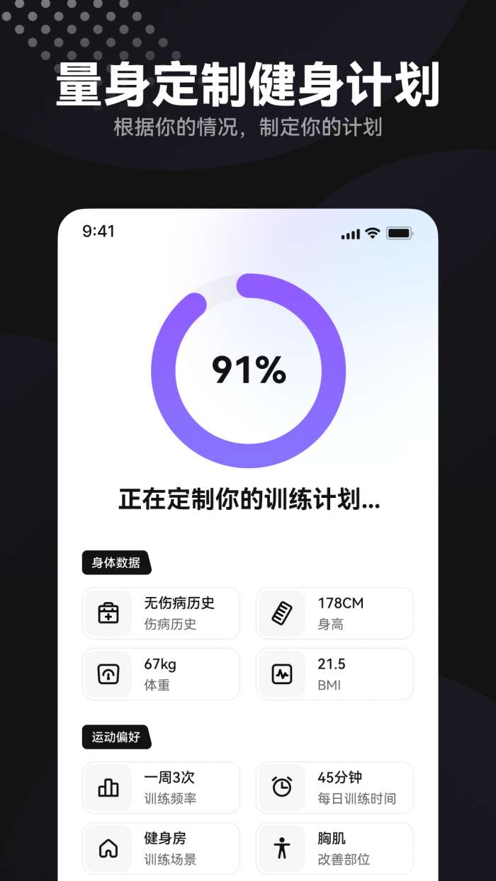 2、定制科学计划:AI系统根据用户的BMI指数和运动历史,生成渐进式训练计划,每周自动调整难度。